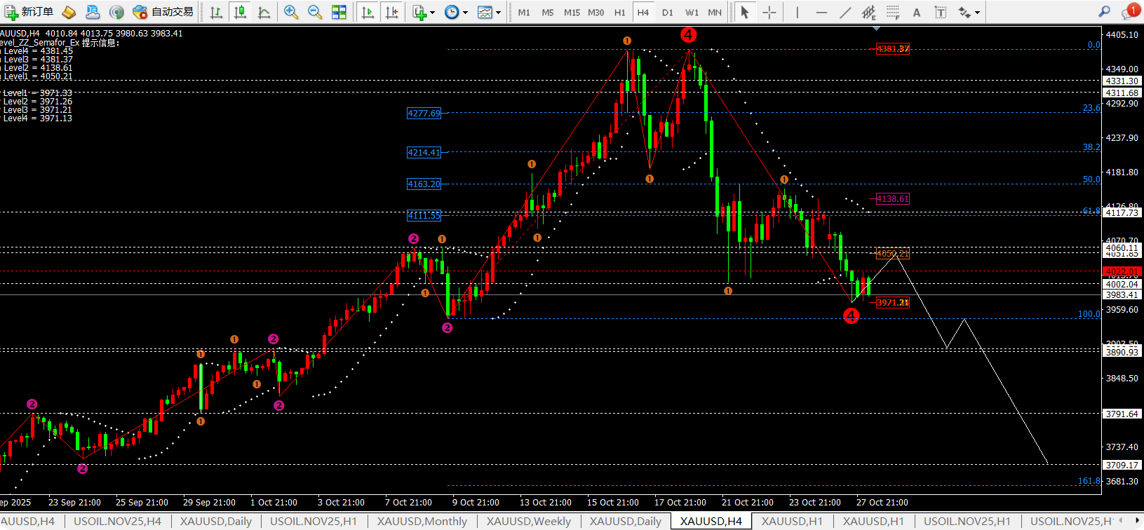 任天成:10.28黄金持续向下且今日破位3970概率较大