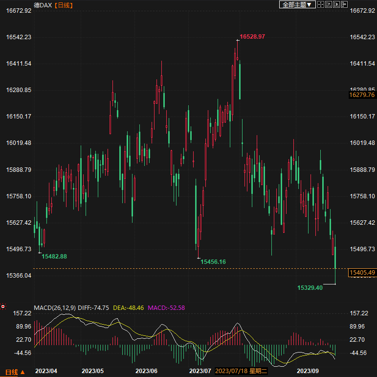 德国DAX30指数收盘下跌154.64点,跌幅0.99%,报15402.65点;