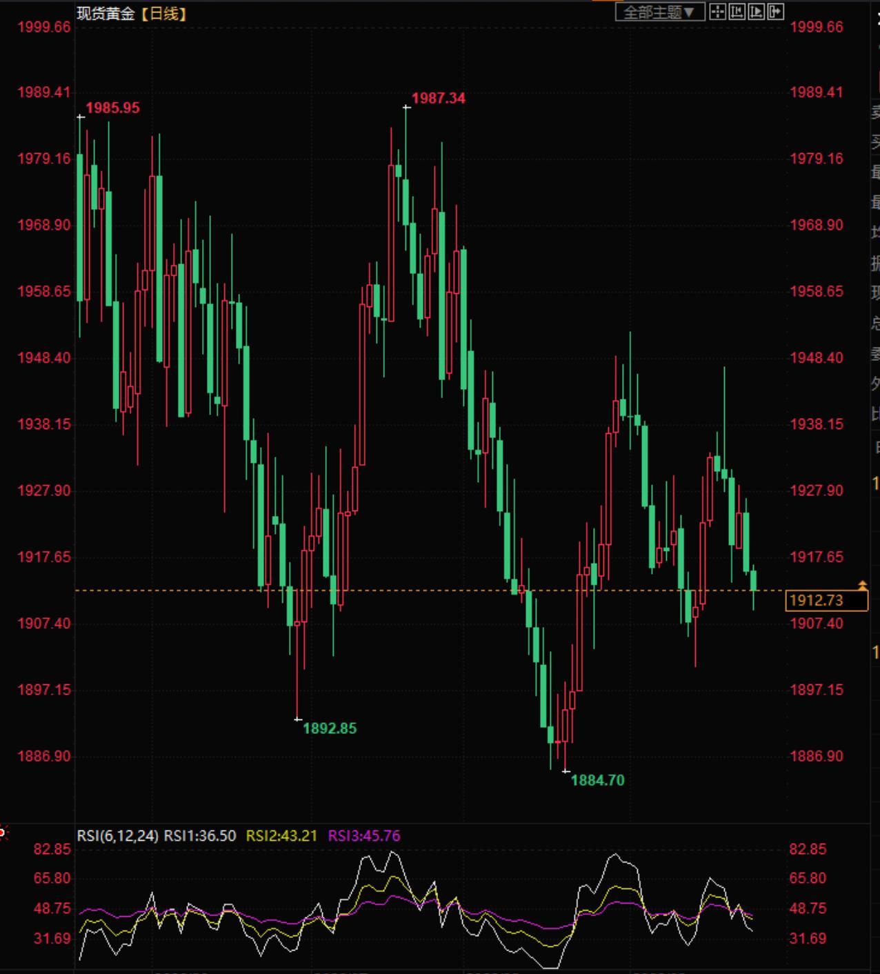 金价正在挑战1910美元/盎司附近的多日低点。如果金价持续跌破上述水平,那么1900美元/盎司关口将面临考验。