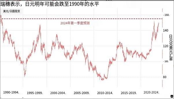 美国银行证券(Bank of America Securities)也预计,日元兑美元汇率将在 2024 年上半年触底,跌至1美元兑155日元。