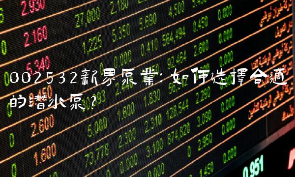 002532新界泵业:如何选择合适的潜水泵?
