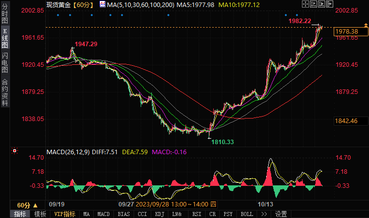 现货黄金维持日内升势,目前金价交投在1980美元/盎司附近。本文对日内黄金技术前景进行分析。