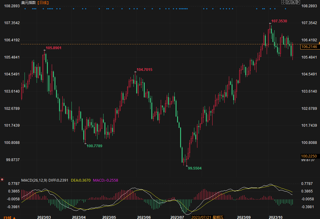 衡量美元兑一篮子六种货币强势的 美元指数上涨 0.6%,至 106.19。该指数当天早些时候曾跌至一个月低点 105.35。