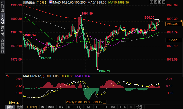 金价短期阻力见于昨日高点1993美元/盎司,若突破该位,那么金价将重新测试2000美元/盎司关口。