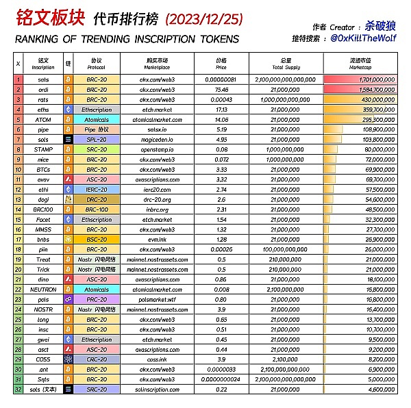 ORDI新高又带动整个铭文市场,各种brc20,spl20,erc20,bsc20等,都跟随波动。