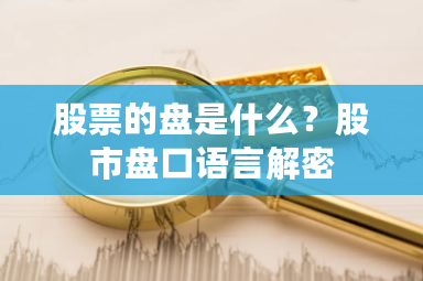 股市中说的盘是指在交易过程中的各个指数的走势图,比如说A股的上证指数,今天大盘跌了意思就是大盘的指数跌了 ,如果说大盘涨了意思说指数涨了,还有就是说一个股票多大盘子,意思就是说这个公司股票总股本有多少股,