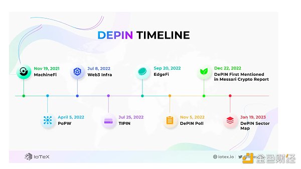DePIN(去中心化物理基础设施),由Messari 在2022 年 12月提出 ,是通过区块链技术和代币奖励来激励世界各地的个人和企业可以以去中心化的方式构建物理世界的任何基础设施(WiFi、硬盘存储、电池等),为任何人提供服务,DePIN是加密网络发展的下一阶段,致力于部署现实世界中的物理基础设施和硬件。