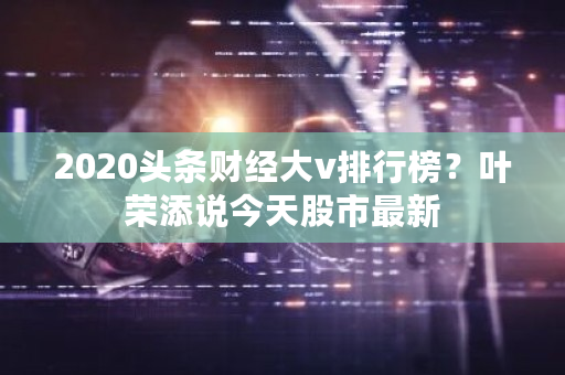 2020头条财经大v排行榜?叶荣添说今天股市最新