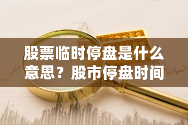 就是股市停市,暂停交易。股票停盘是股票中的专业术语,意思就是暂时停止交易,如果在停盘之前买入的,在停盘期间是无法交易的。停盘分主动和被动2种:当股票告诉有影响股价的重大举措时候,主动申请停盘,待举措公布之日开盘,保证市场公平;当公司严重亏损,面临破产会被交易所强制停盘。