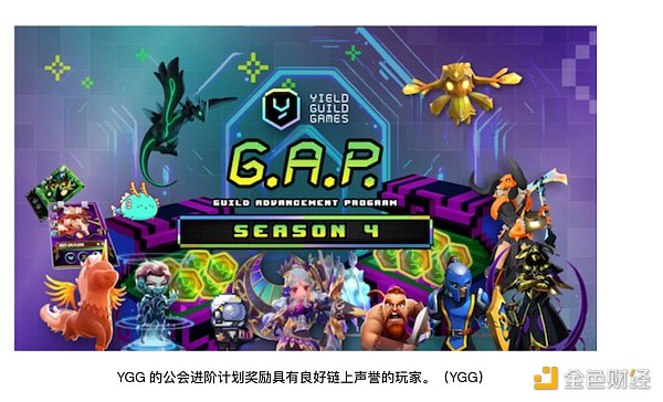 YGG 的公会进步计划(简称 GAP)是一项活动,玩家可以完成游戏中的任务和基于社区的任务,以证明他们的能力以及他们对更广泛社区的贡献。