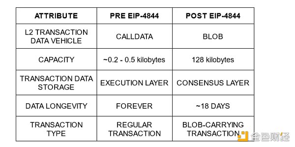 然而,使用携带 blob 的交易将数据发布到以太坊会显著降低gas费用,因为只有指向包含 L2 交易的 blob 的引用可供执行层使用,这意味着 blob 数据不能被重新执行。blob 中包含的所有数据都存储在共识层(信标节点)中,时间有限。更便宜的交易的一个小权衡是增加了块大小,需要节点有更大的存储容量。