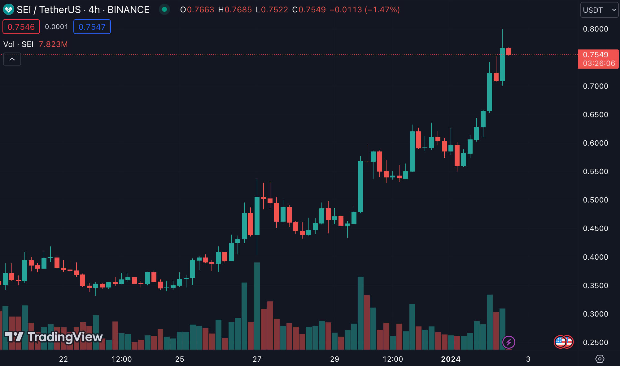SEI刷新历史新高达0.8美元!Sei主网将于2024上半年升级V2