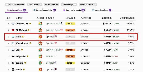 生态增长 TVL 飙升 Metis 或是 Layer2 最具潜力黑马