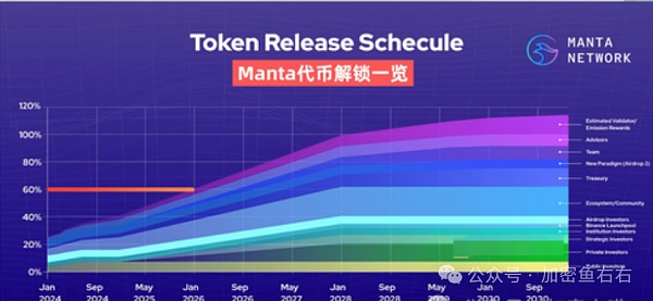 代币每年增发2%,初始解锁约25%的代币,到2025年末,即牛市末期,将累计解锁60%的代币,而剩余的代币将在未来5年内全部解锁。虽然这个项目具有强大的潜力,但要注意未来的解锁量并不小,这一点需要引起大家的关注。