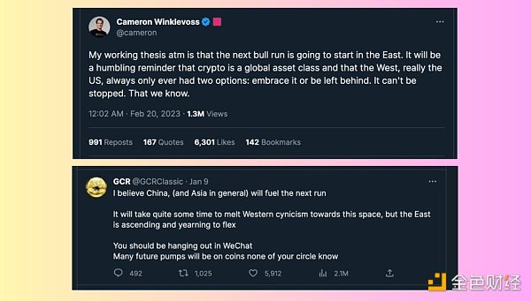 东方力量: 加密货币 Twitter 严重偏向于美国。这就是为什么大多数 CT 无法理解 Tron 如此受欢迎的原因(它在亚洲使用广泛)。不要低估韩国散户的力量,以及香港变得更加加密货币友好的趋势。