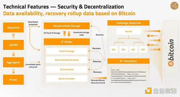 数据可用性层包括分布式存储、B²节点和比特币网络。该层负责永久存储 Rollup 数据的副本,验证 Rollup 的零知识证明,并最终在比特币上执行最终确认。