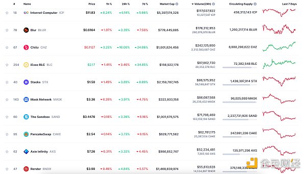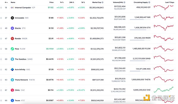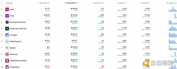 24小时NFT交易量、交易量前十项目 数据来源:Coinmarketcap