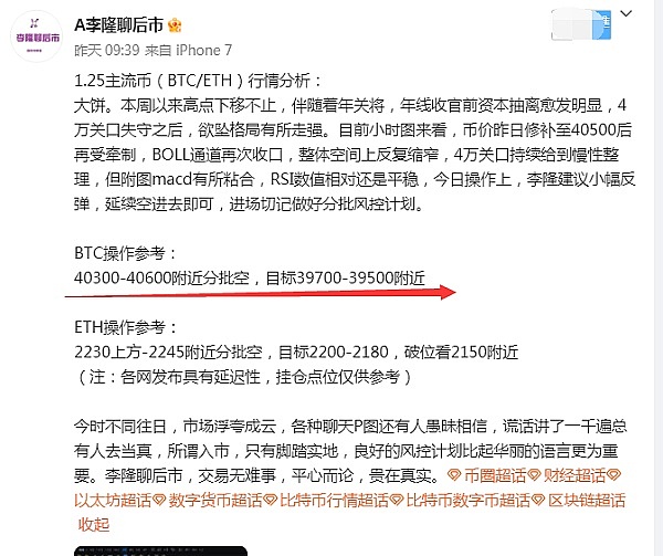 大饼。如李隆昨日所说,触及40300直接开空,午夜最低触及39500附近,昨日盘中目标成功扫盈,空头思路走出700余点的把握空间,实力番苍,全网见证!点位依旧精准吻合,盘中理性稳健取舍。李隆聊后市,交易无难事,平心而论,贵在真实。