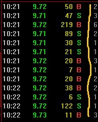 红色为主动性的买单。绿色为主动性的卖单。白色代表没成交的单。手数是这笔交易有多少股交易了。100股代表1手。