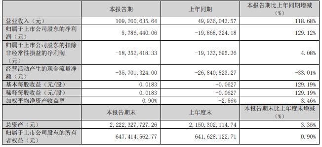 大烨智能2024年一季度报告显示,2024年一季度,大烨智能实现营业收入1.09亿元,同比增长118.68%;归属于上市公司股东的净利润578.64万元,同比增长129.12%;归属于上市公司股东的扣除非经常性损益的净利润-1835.24万元;经营活动产生的现金流量净额-3570.13万元,同比下滑33.01%。