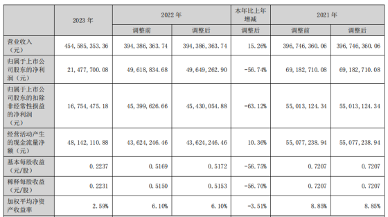 中国网财经4月17日讯 近日,蒙泰高新发布2023年报。2023年,公司实现营收4.55亿元,同比上升15.26%;归属于上市公司股东的净利润2147.77万元,同比下降56.74%;扣非净利润1675.45万元,同比下滑63.12%。