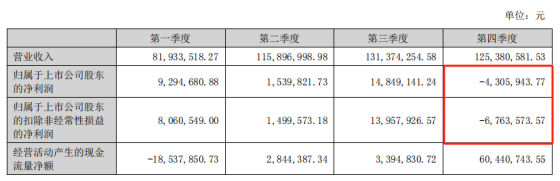 分季度看,蒙泰高新的净利润及扣非净利润在去年第2季度出现明显下滑;到了第4季度,公司净利润及扣非净利润均出现亏损,分别为-430.59万元和-676.36万元,环比分别下滑128.80%和148.46%。
