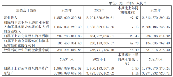 中国网财经4月19日讯 日前,荣泰健康发布2023年报。2023年,公司实现营收18.55亿元,同比下降7.47%;归属于上市公司股东的净利润2.03亿元,同比增长23.43%;扣非净利润1.86亿元,同比增长47.78%。
