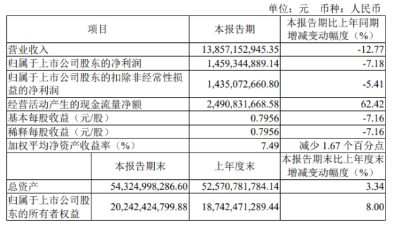 中国网财经4月29日讯 日前,云天化发布2024年一季报。今年1-3月,公司实现营收138.57亿元,同比下滑12.77%;归属于上市公司股东的净利润14.59亿元,同比下滑7.18%;扣非净利润14.35亿元,同比下滑5.41%。