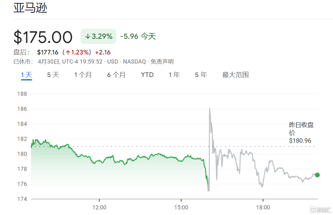财报发布后,原本收跌3.29%的亚马逊盘后一度飙涨超6%,不过随后收窄至1%。