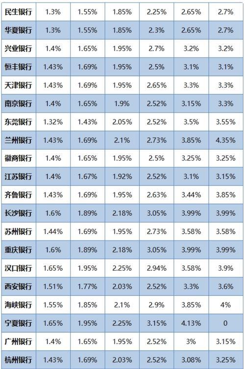 2023年,随着央行多次加息,各大银行的抵押贷款利率也随之上调。截至2023年10月17日,各大银行的抵押贷款利率基本在5.5%-6.5%之间。