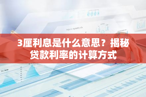 3厘利息是什么意思?揭秘贷款利率的计算方式