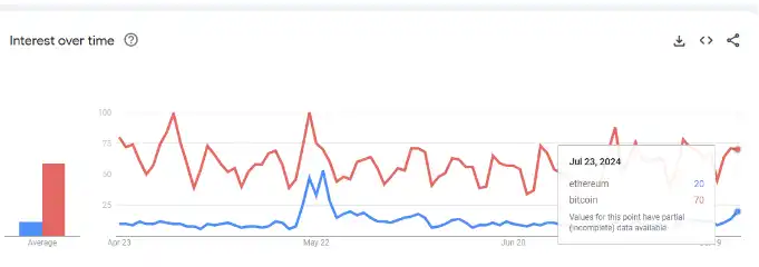 上图显示了最近的谷歌趋势,认为我们可以现实地达到总兴趣的 20-30%(如果 ETH 真正上涨,甚至更高,如我们在 5 月批准时所见)。
