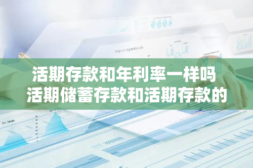 很多朋友对于活期存款和年利率一样吗和活期储蓄存款和活期存款的差异性不太懂,今天就由小编来为大家分享,希望可以帮助到大家,下面一起来看看吧!