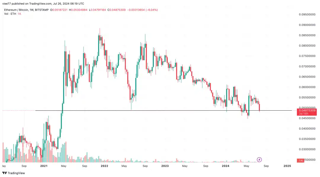 03 ETH 在本阶段落后于 BTC:参考 ETH/BTC 汇率