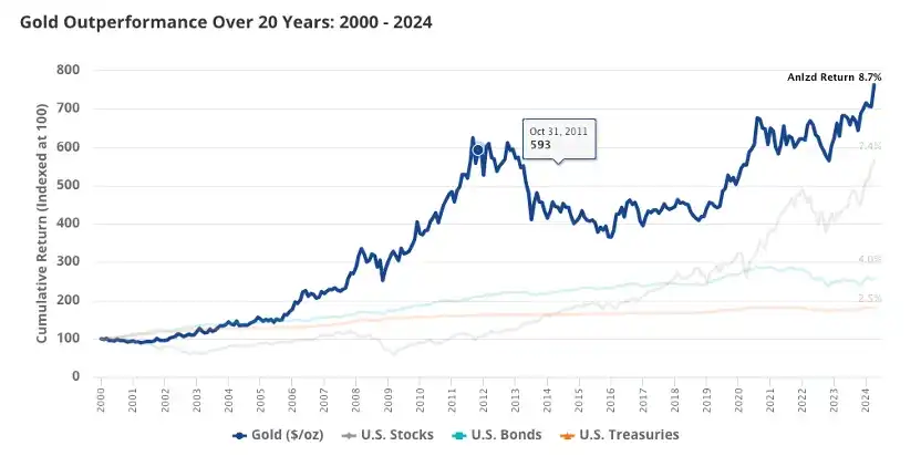 1971 年,美国总统尼克松取消了美元与金本位的挂钩。VanEck 的黄金基金(今天被称为 VanEck 国际投资者黄金基金)是同类基金中的第一个,随着金价从每盎司 35 美元飙升至 800 美元,该基金一举成为行业表现最好的基金。