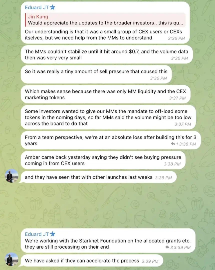 希望 ZKX 的其他投资者能够站出来表达自己的意见,加密行业需要消除这种不透明的行为,而且 Starknet 团队需要解释为什么支持这个项目。