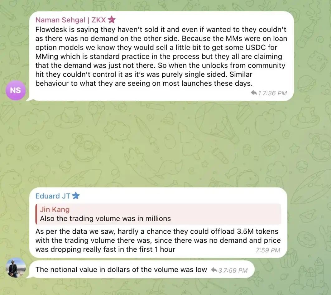 而该团队的解释是:像 Amber Group、Flowdesk、IMC 这样的做市商无法将价格稳定在 0.7 美元,因为一小部分用户抛售所致。
