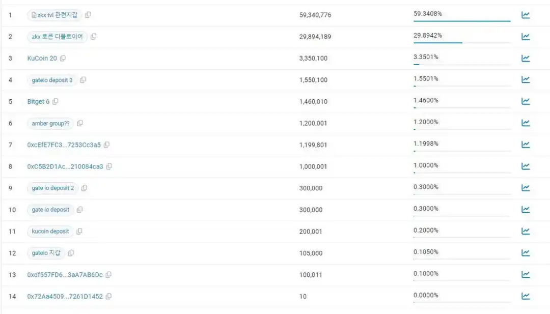 下图的第一张是 TGE 之前的钱包快照。第二张图片是代币经济学,在 TGE 之前,有超过 1000 万枚代币在流通(与代币经济学不符)。第三张图片是 CEX 的营销激励,Gate、KuCoin、Bitget 需要就此进行确认。