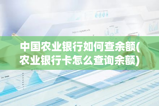 很多朋友对于中国农业银行如何查余额和农业银行卡怎么查询余额不太懂,今天就由小编来为大家分享,希望可以帮助到大家,下面一起来看看吧!