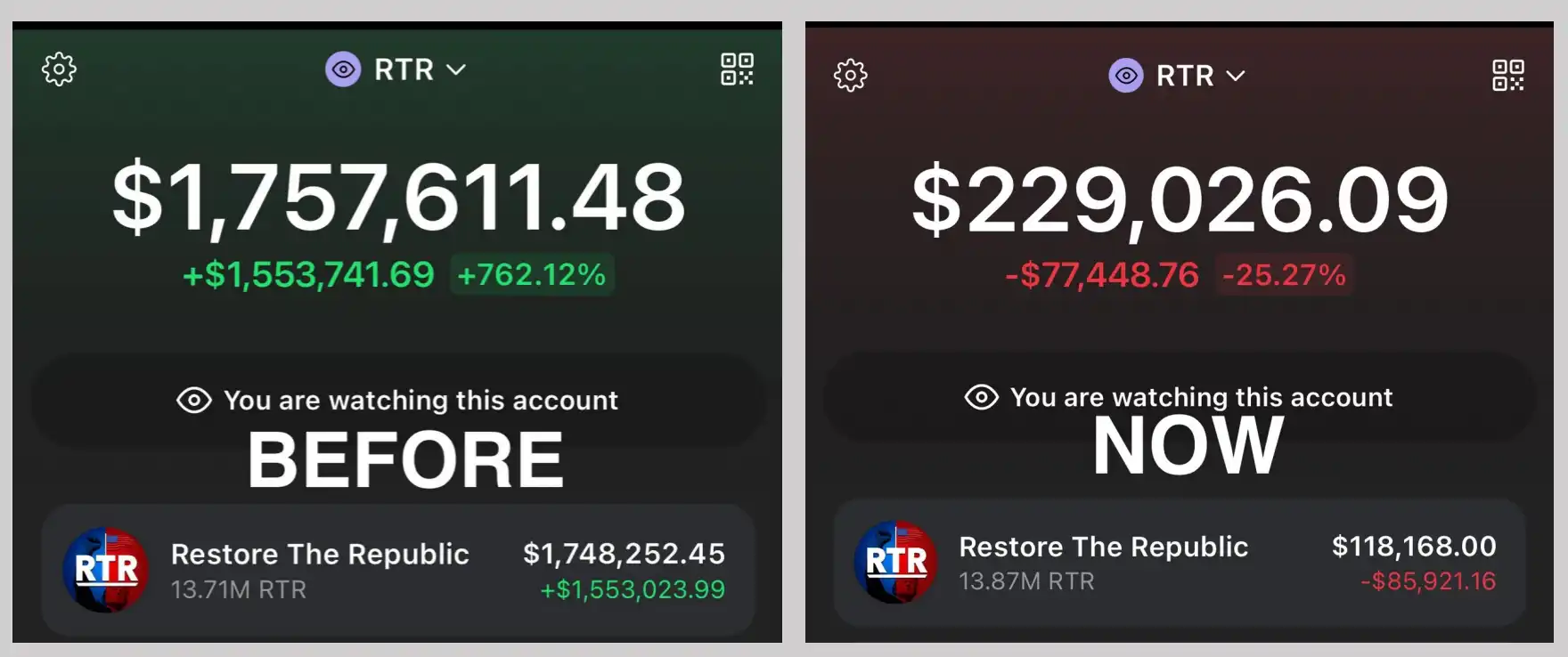 但在 RTR 上,其流通市值一度达 1.5 亿美元,交易者不乏出手数十万美元的大户,RTR 崩盘带来的影响也「惨烈」许多。