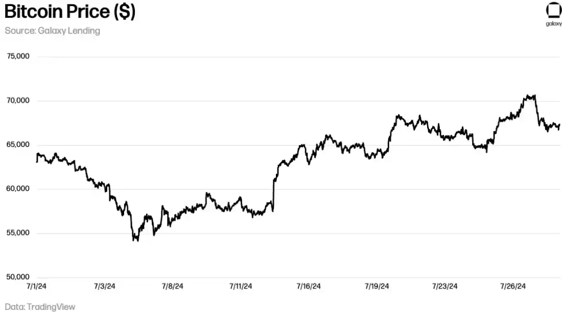 在七月,比特币经历了显著的价格波动,价格跌至 55,000 美元以下的低点,随后上涨至 70,000 美元以上,但随后失去了动力。这种波动性可以归因于多个因素,包括德国政府和 Mt. Gox 的卖压减少。然而,这一波涨幅的主要原因还是由于市场对 BTC Nashville 这一备受期待事件的预期。