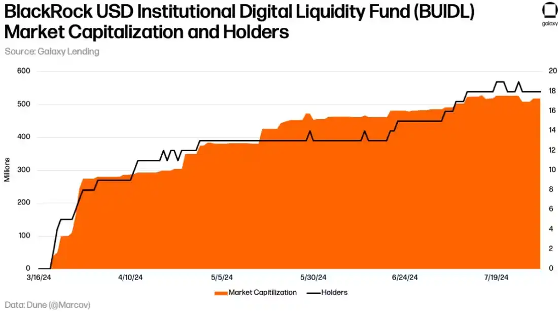 BlackRock 的 BUIDL 基金市场价值持续上升,这反映了对代币化国债需求的增长