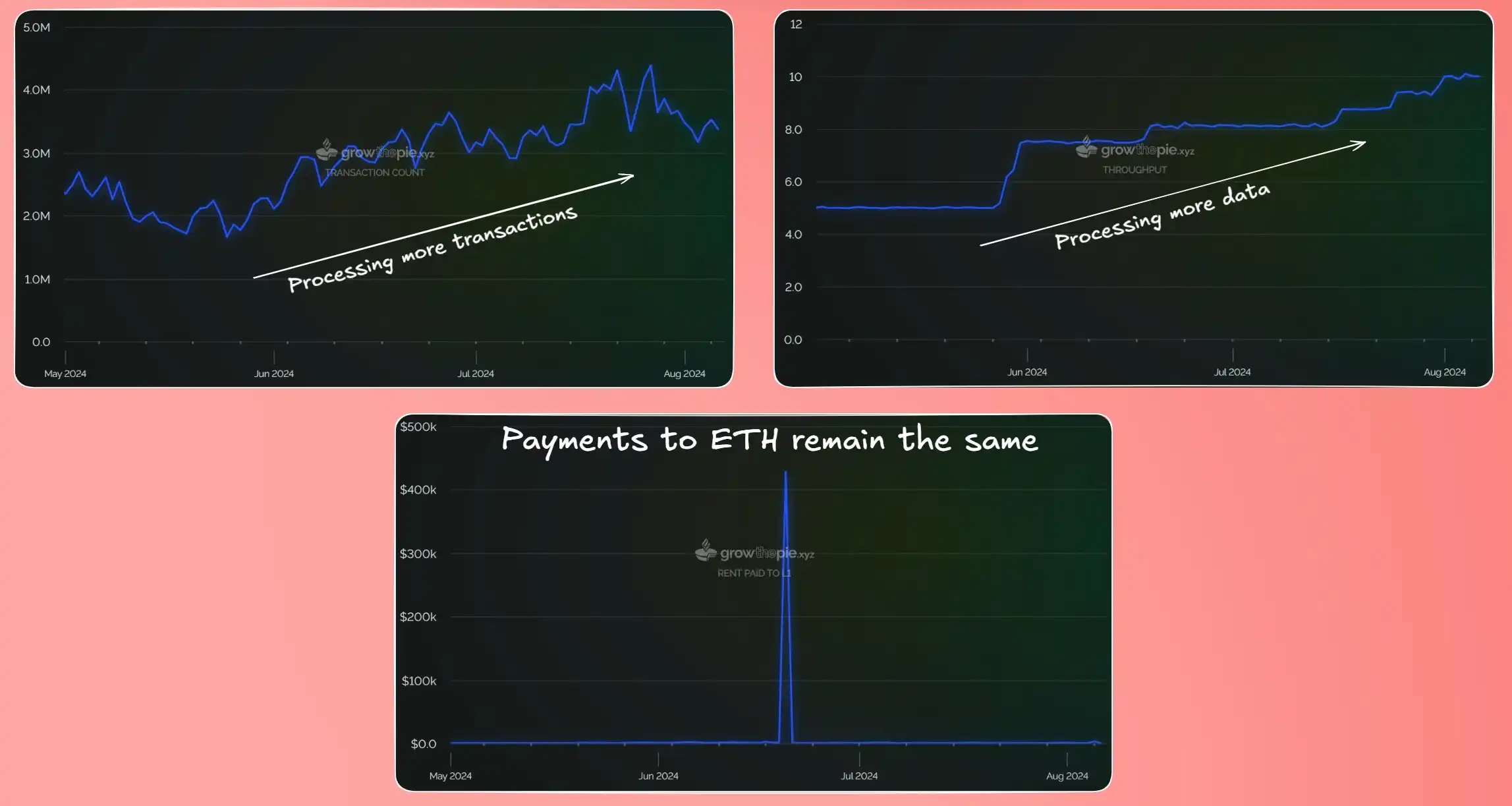 单一的 L2 正在处理越来越多的交易和吞吐量,同时保持对以太坊的成本相对稳定。