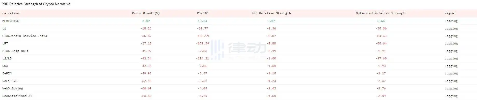 过去90日仅meme币板块保持上涨,AI和链游板块均跌超60%
