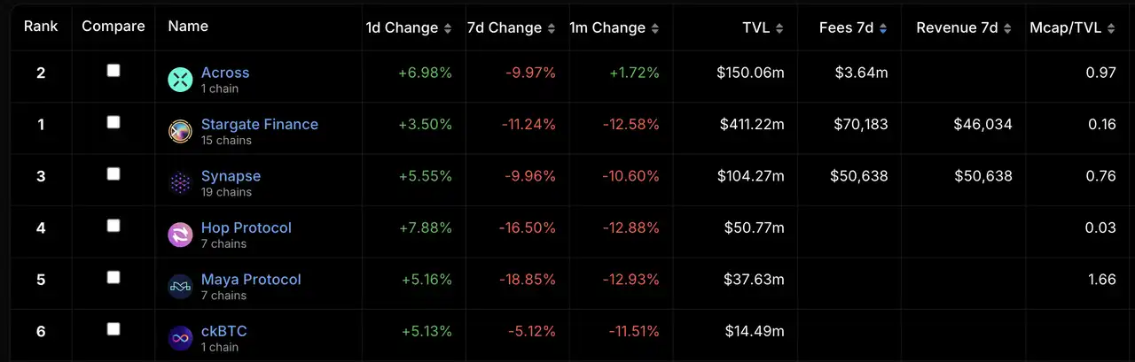 Across Protocol 协议的收费能力较高 来源:DefiLlama