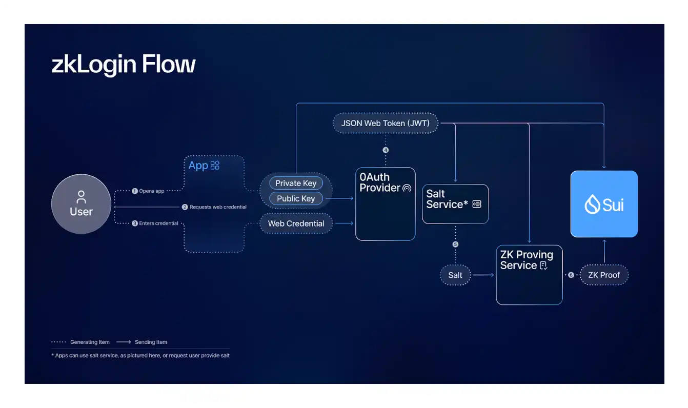 zkLogin 通过允许用户使用熟悉的 Web2 凭证(如 Google 或 Twitch)登录基于 Sui 的应用,简化了链上访问,消除了设置经典钱包的需求。尽管这似乎与加密隐私的理念相悖,但 zkLogin 利用零知识证明将 Web2 凭证安全地链接到 Sui 地址。