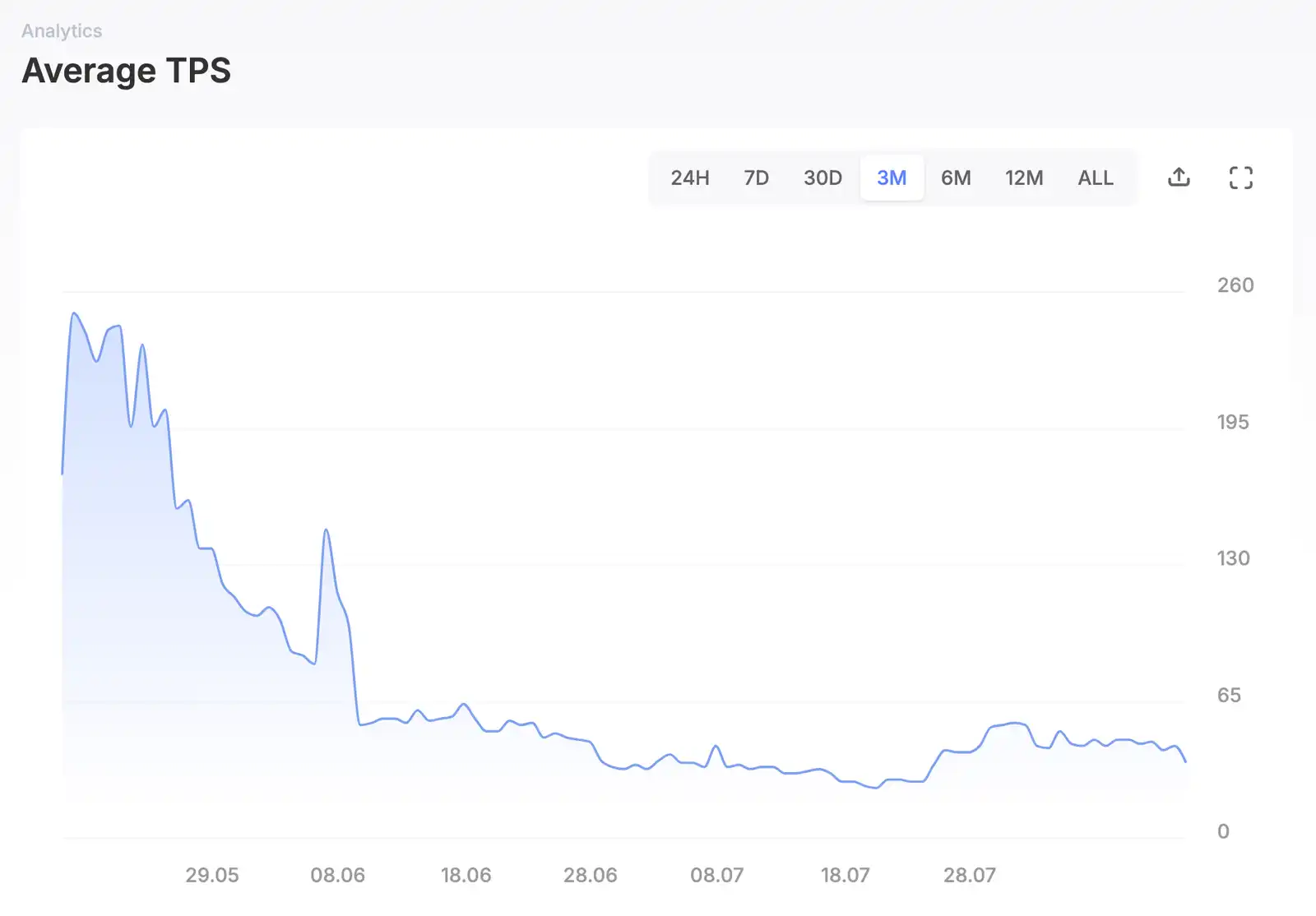 Sui 的面向对象数据模型和共识机制旨在使其能够快速高效地处理大量交易。与将交易批量处理不同,Sui 的验证节点单独并行处理每笔交易。涉及不同对象的不同交易可以同时处理,无需等待区块填充。由于交易之间不需要相互等待,这一特性理论上允许 Sui 每秒处理数十万笔交易,尽管其过去 30 天的平均 TPS 仅为 36。