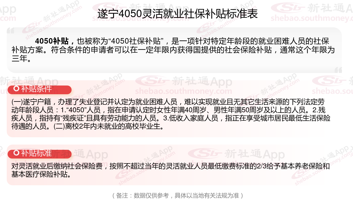 一、2023-2024年遂宁4050社保补贴标准及条件,最新如下