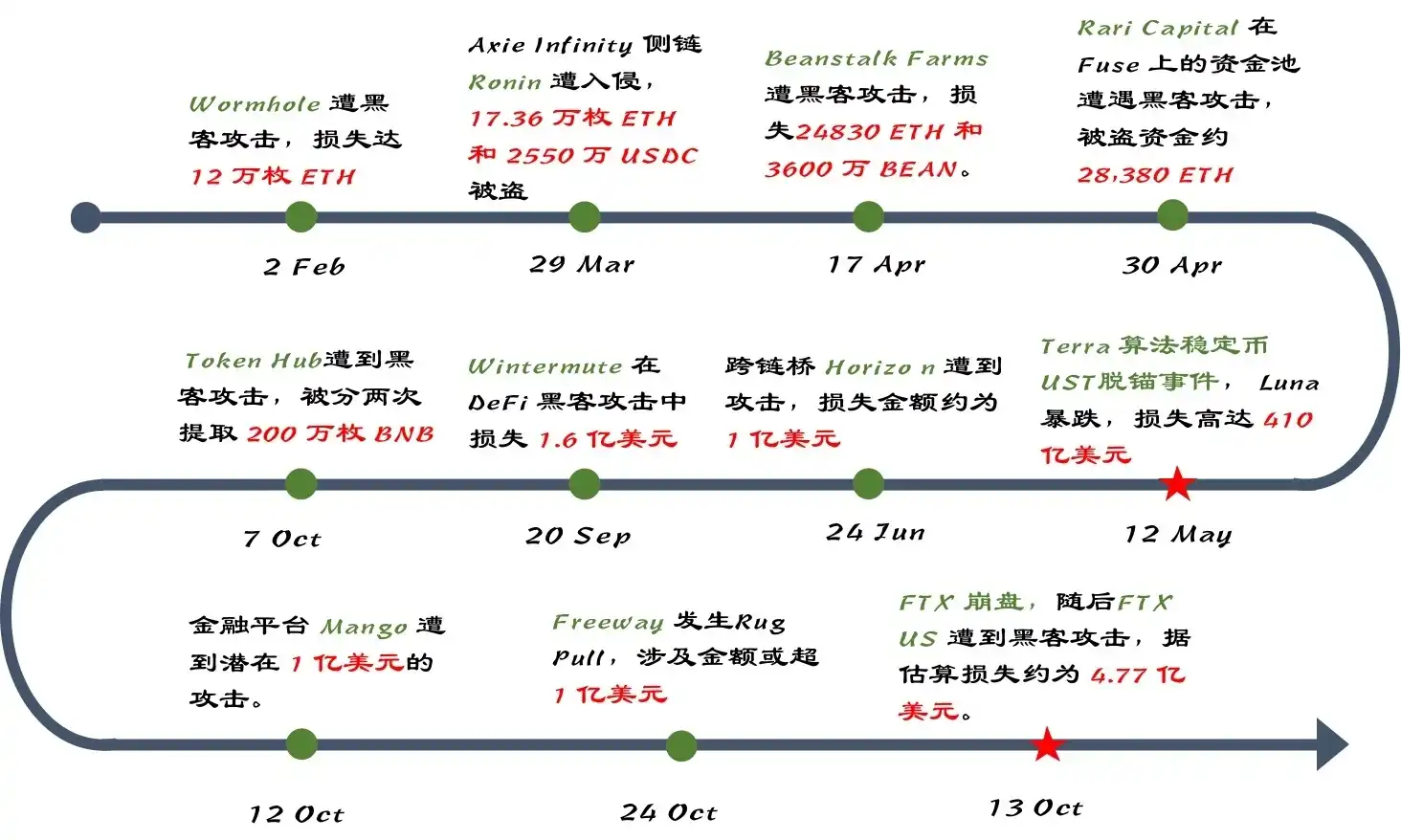 再结合彼时层出不穷的安全事件,加密行业一时间称得上是雪上加霜。据不完整统计,2022 年加密货币行业相关安全事件约为 427 起,造成的直接经济损失超 35 亿美元,涉事总金额超过 753 亿美元。