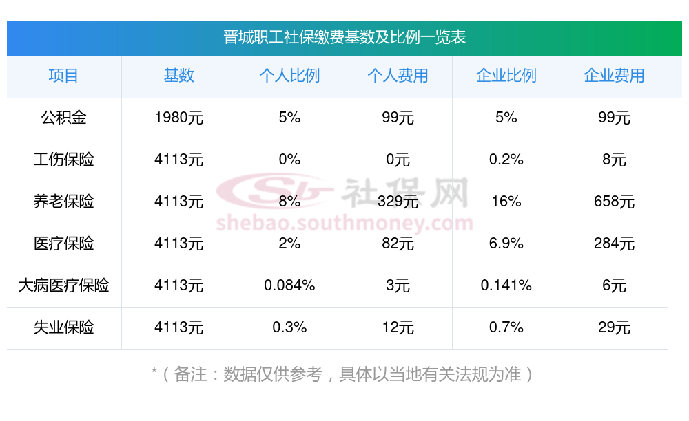 社保缴费价目表2024最新标准,以晋城社保缴费明细为例